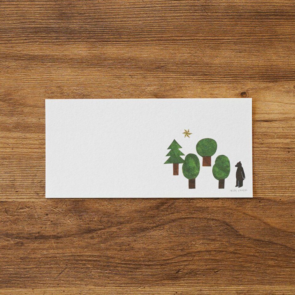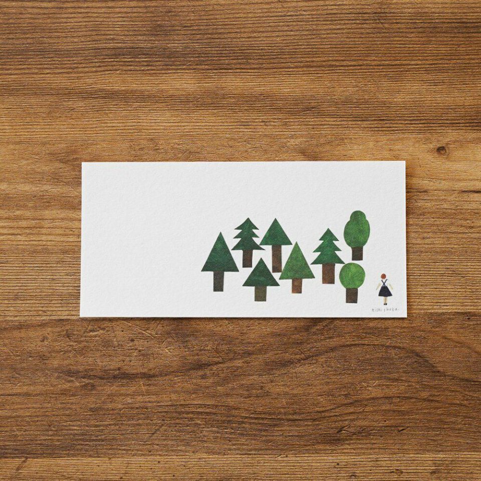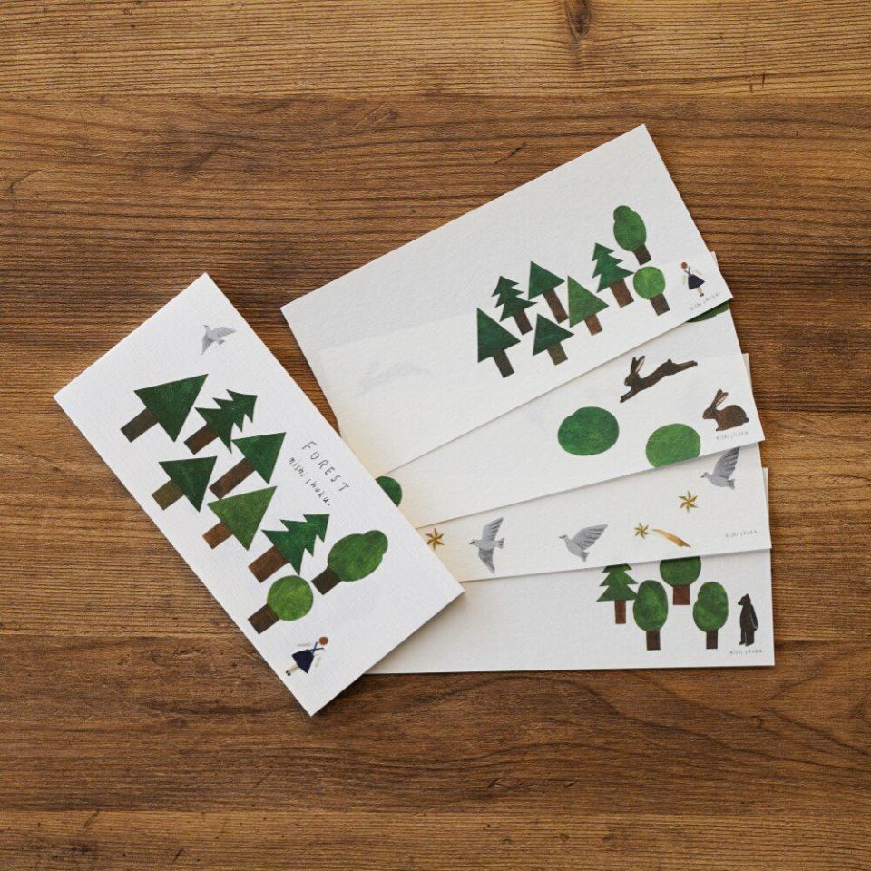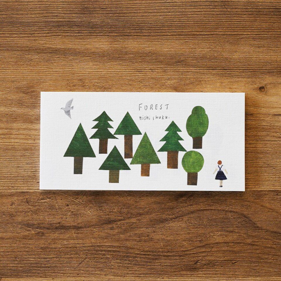 西淑さんの一筆箋です。森のなかの風景が描かれています。まるで物語の一場面のような 素敵なデザイン。美濃和紙を使用しており、やさしい風合いをお楽しみいただけます。