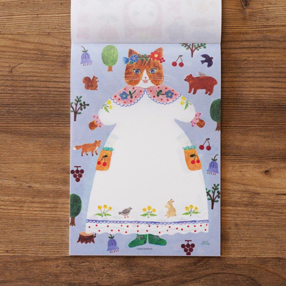 イラストレーター・布川愛子さんの便箋。絵本のような温かみと愛らしさのあるデザインです。ネコさんのワンピースに模様を描くように文字を書けば、素敵なお手紙ができあがりますよ。罫線がないので、お好みの文字量・大きさでお使いいただけます。ラッピングペーパーやデザインペーパーとしても使うのも◎ おそろいの柄の封筒「布川愛子 封筒 Cat and Onepiece」もございます。