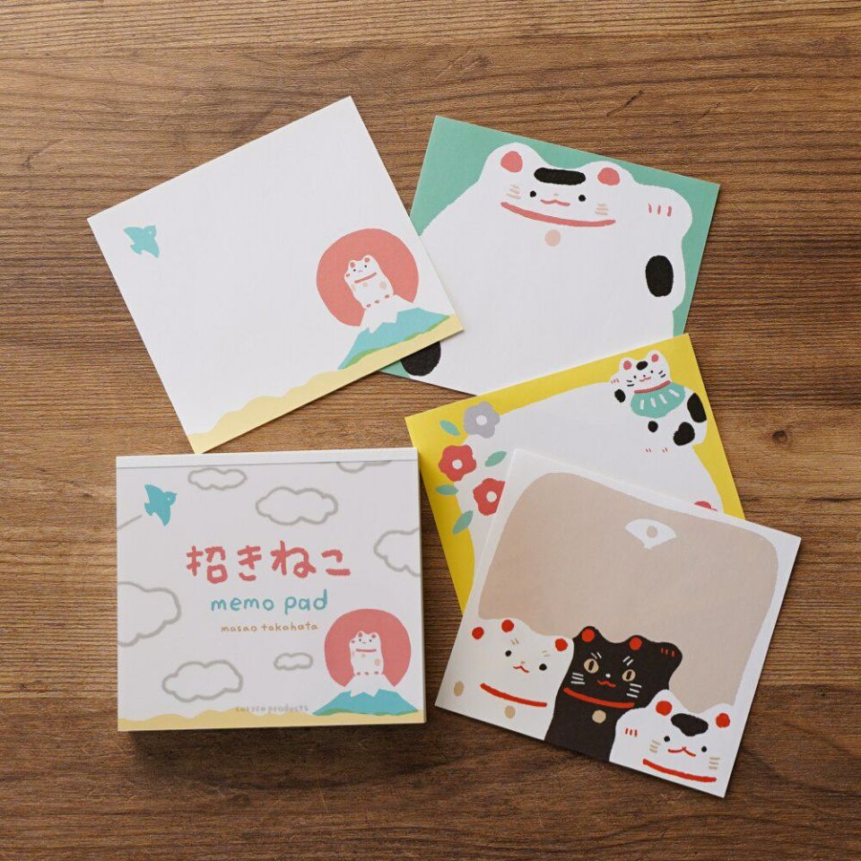 招きねこが片手をあげた姿がなんともかわいい、高旗将雄デザインのブロックメモ。ページをめくるたび、メモを使うたびに思わず笑顔になってしまいそう。毎日の暮らしをちょっと楽しくしてくれるようなアイテムです。