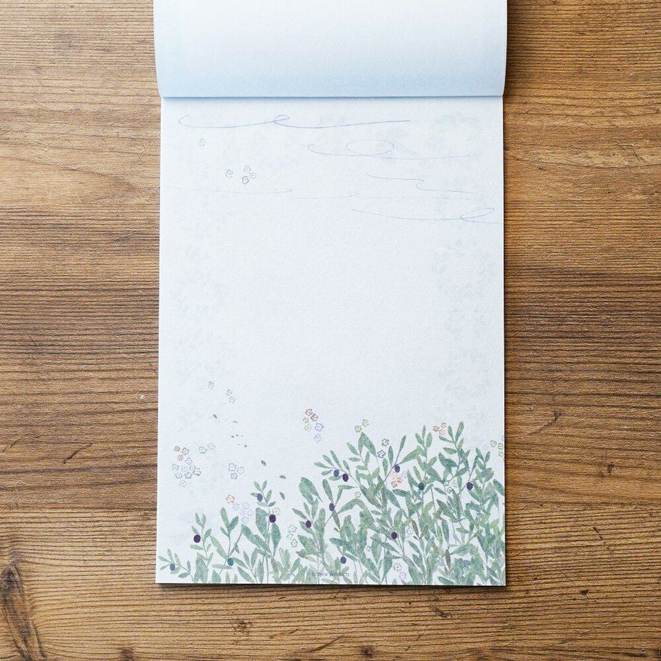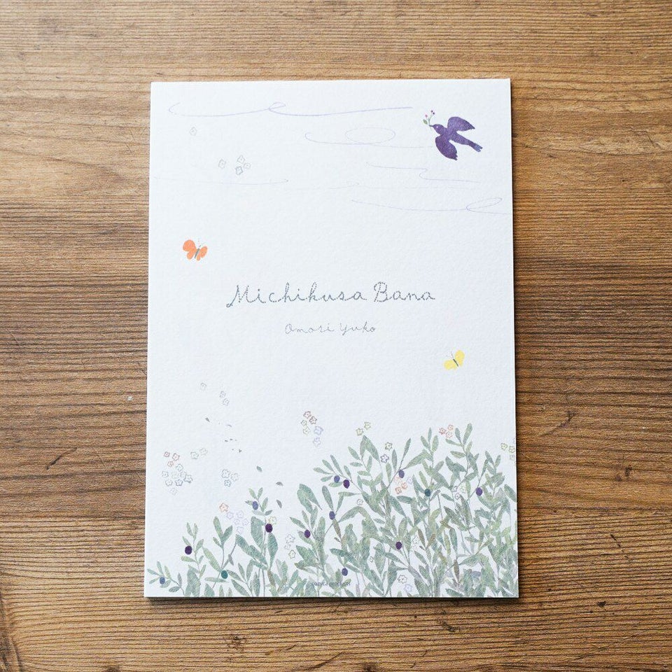 散歩している時に見かけるような、道端にさりげなく咲いている草花にフォーカスした便箋。植物のやさしい力強さや、心地よい風を感じるような大森さんのイラストをお楽しみいただけます。