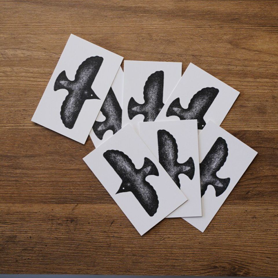 名刺と同じサイズのメッセージカードです。カードとして飛び交います。鳥です。