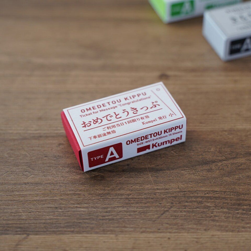 「kumpel」は創業以来約100年にわたってきっぷ印刷に携わってきた山口証券印刷が立ち上げたブランドです。本格仕様のきっぷ型メッセージカードで気持ちを伝えてみませんか?「おめでとうきっぷ」15枚入り。紐を通せる穴もついているので、プレゼントに添えてみても。日本文具大賞2021デザイン部門グランプリ受賞作品。