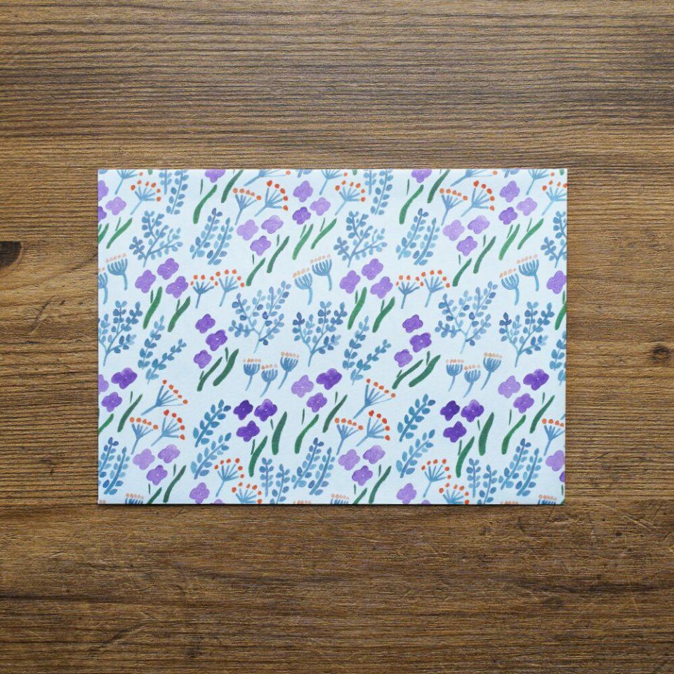 テキスタイルデザイナー・青山佳世さんの図案がプリントされた「RESFEBER(レースフェーベル)」シリーズのレターセットです。色鮮やかな模様の封筒に、便箋、宛名ラベルがセットになっています。