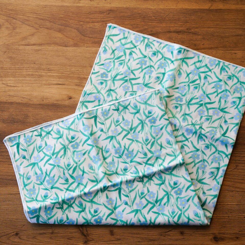 大判で吸水性があり、しっかり拭けて乾きやすいハンカチです。首に巻いたり、お弁当包みとしてもご使用頂けます。