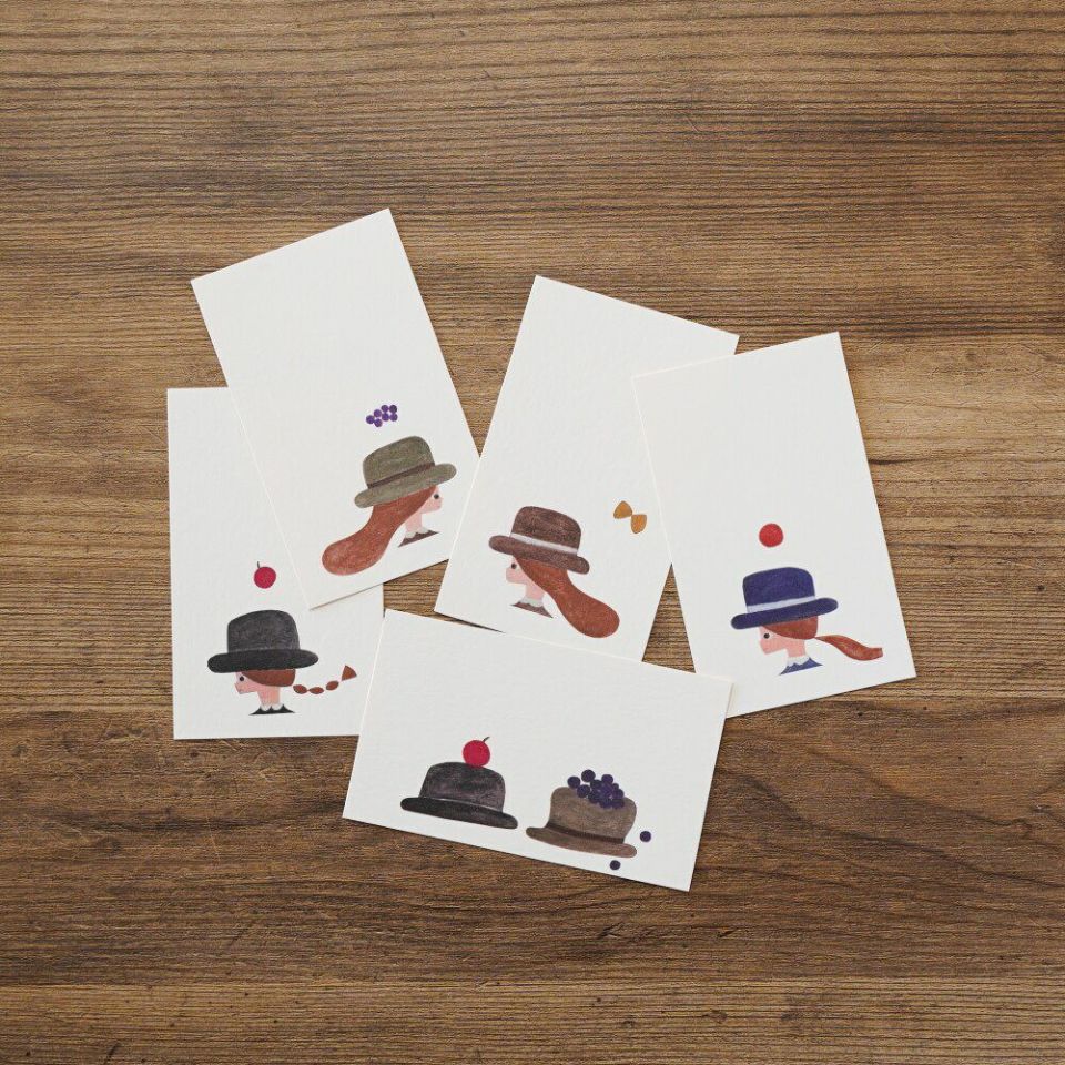 名刺サイズのカードが、5柄 各3枚 合計15枚入っています。ポストカードと同じ、厚みのある紙を使用していますのですこしきちんとした印象になります。名前を書いて名刺代わりに、メモに、ラッピングに、ちょっとひとこと添えたいときに、どうぞお使いください。