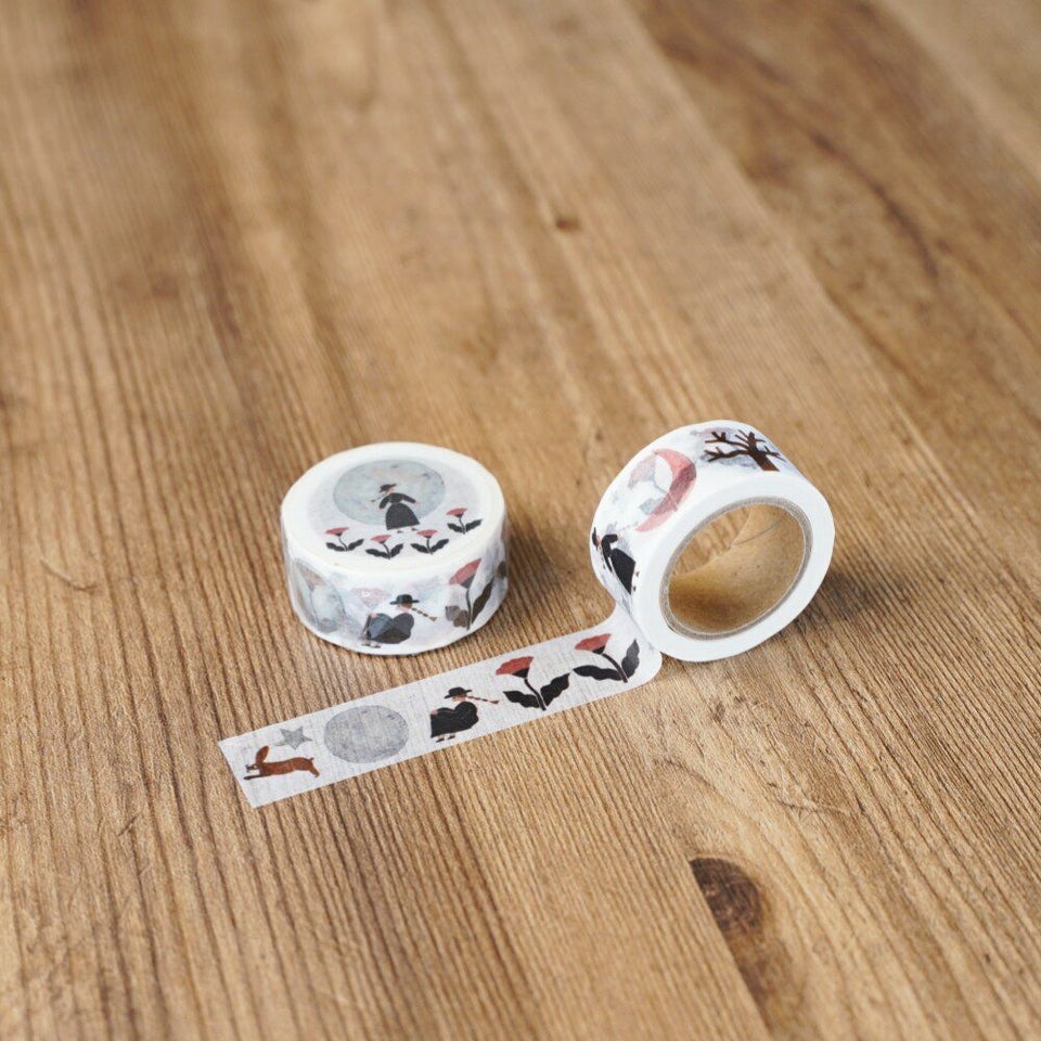 北海道にアトリエを構える、のりおさんとあさみさんによるものづくりユニット・ネクタイのオリジナルマスキングテープ「月がきれい」です。満月も三日月も 全部きれいです。