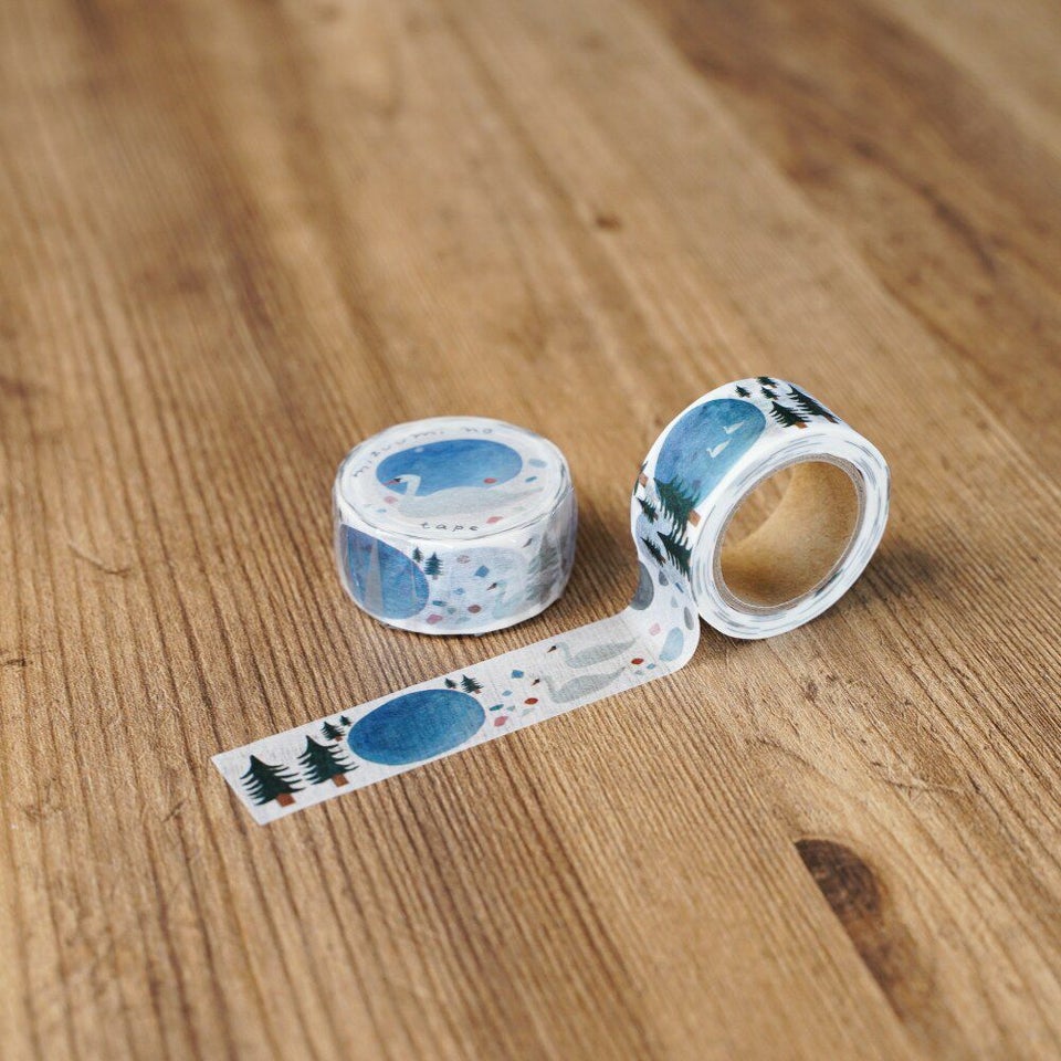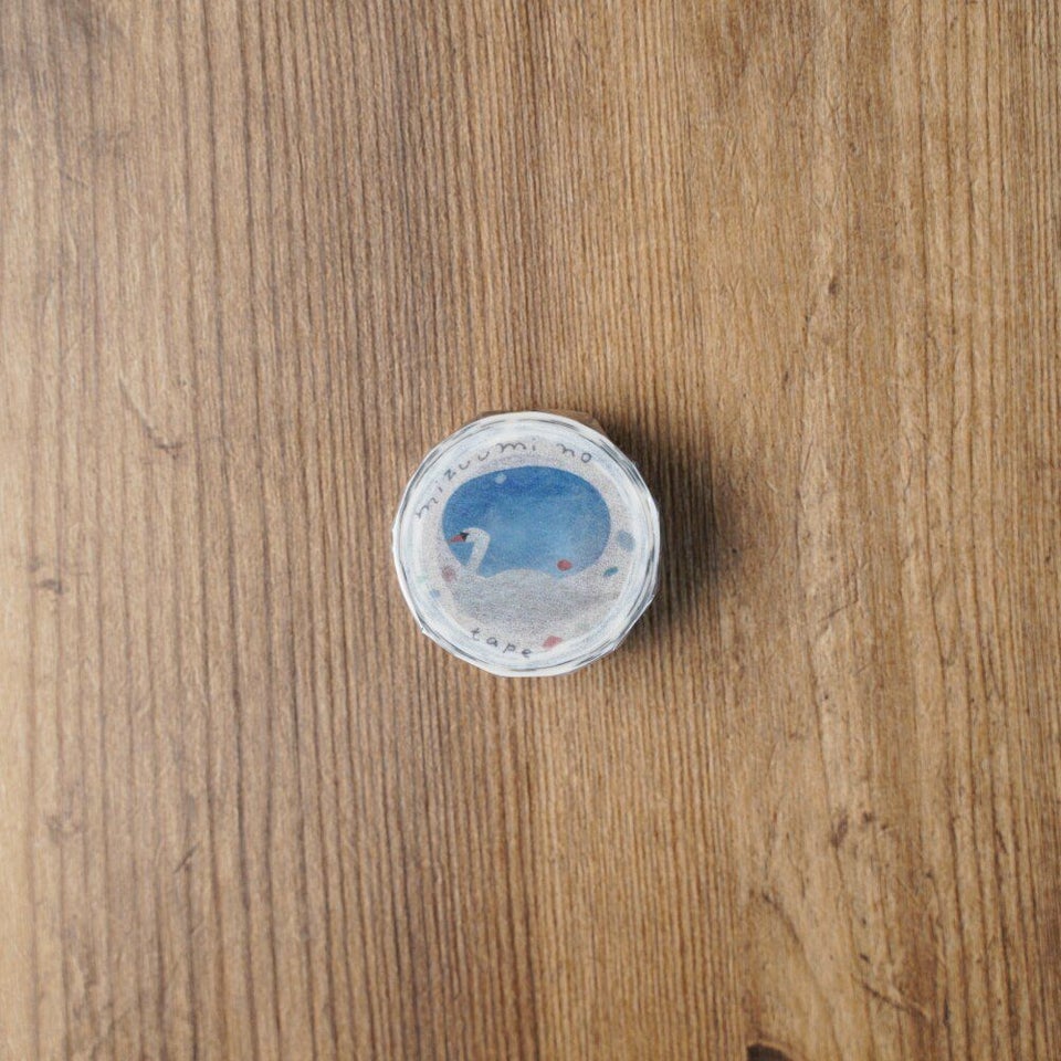 北海道にアトリエを構える、のりおさんとあさみさんによるものづくりユニット・ネクタイの オリジナルマスキングテープ「みずうみのテープ」です。洞爺湖の白鳥のことを思い描きながらデザインしました。