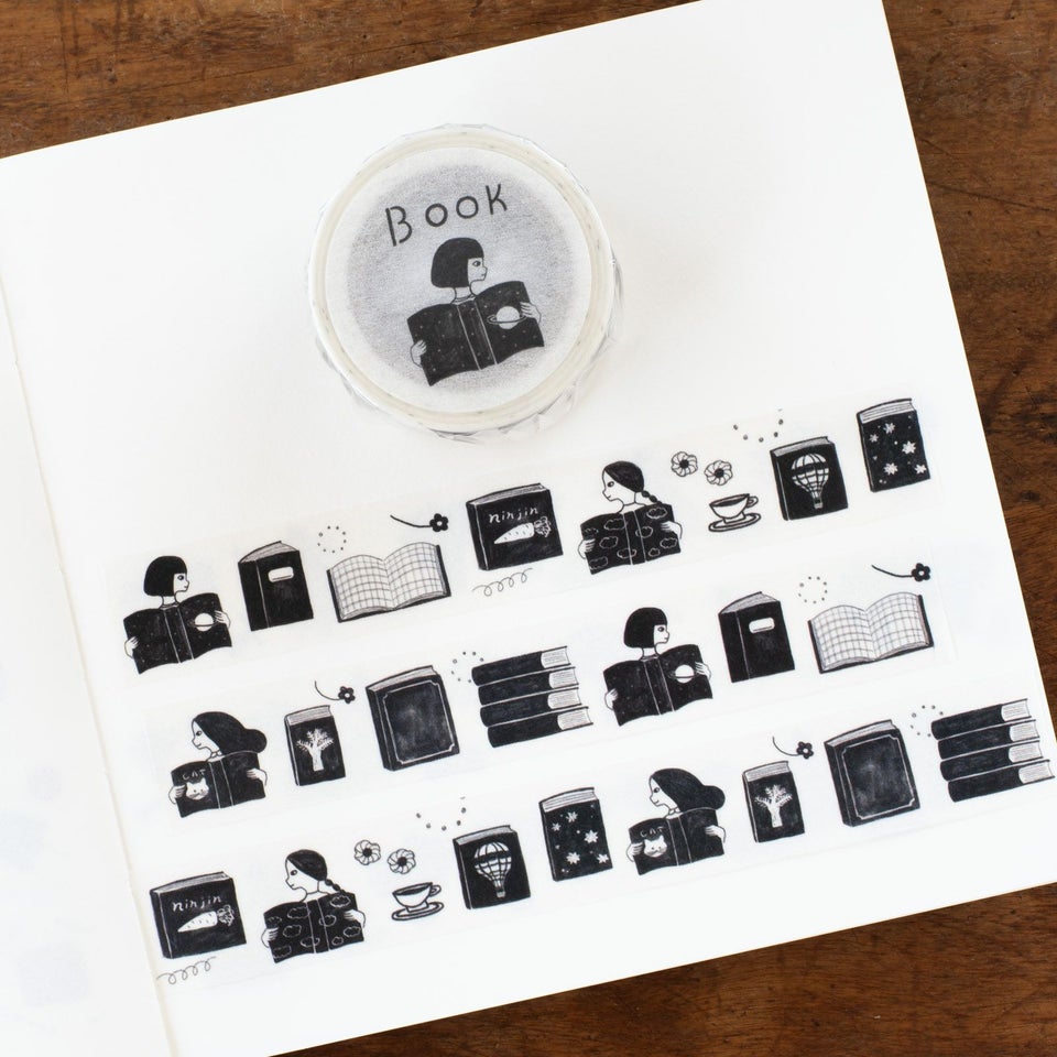 北海道にアトリエを構える、のりおさんとあさみさんによるものづくりユニット・ネクタイ。ゆるく描かれた動物や人物たちの中にネクタイらしいユーモアが潜んでいて、見る人を夢中にさせてくれます。モノクロームの本や女の子が描かれたマスキングテープです。近ごろは、土星の本と人参の本に夢中みたいです。