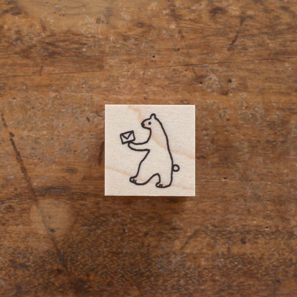 北海道にアトリエを構える、のりおさんとあさみさんによるものづくりユニット・ネクタイさん。ゆるく描かれた動物や人物たちの中にネクタイさんらしいユーモアが潜んでいて、見る人を夢中にさせてくれます。小さなお手紙を持った、くまおさんのスタンプです。