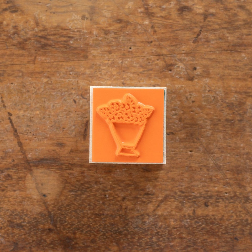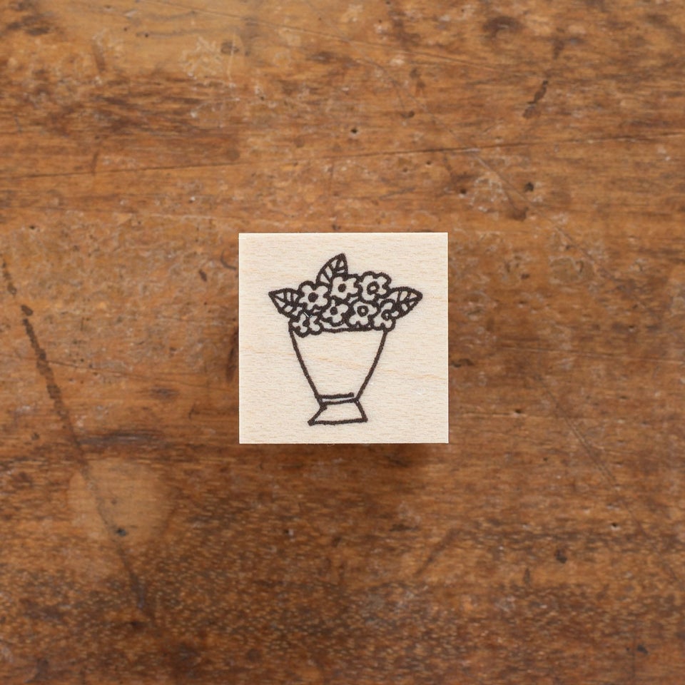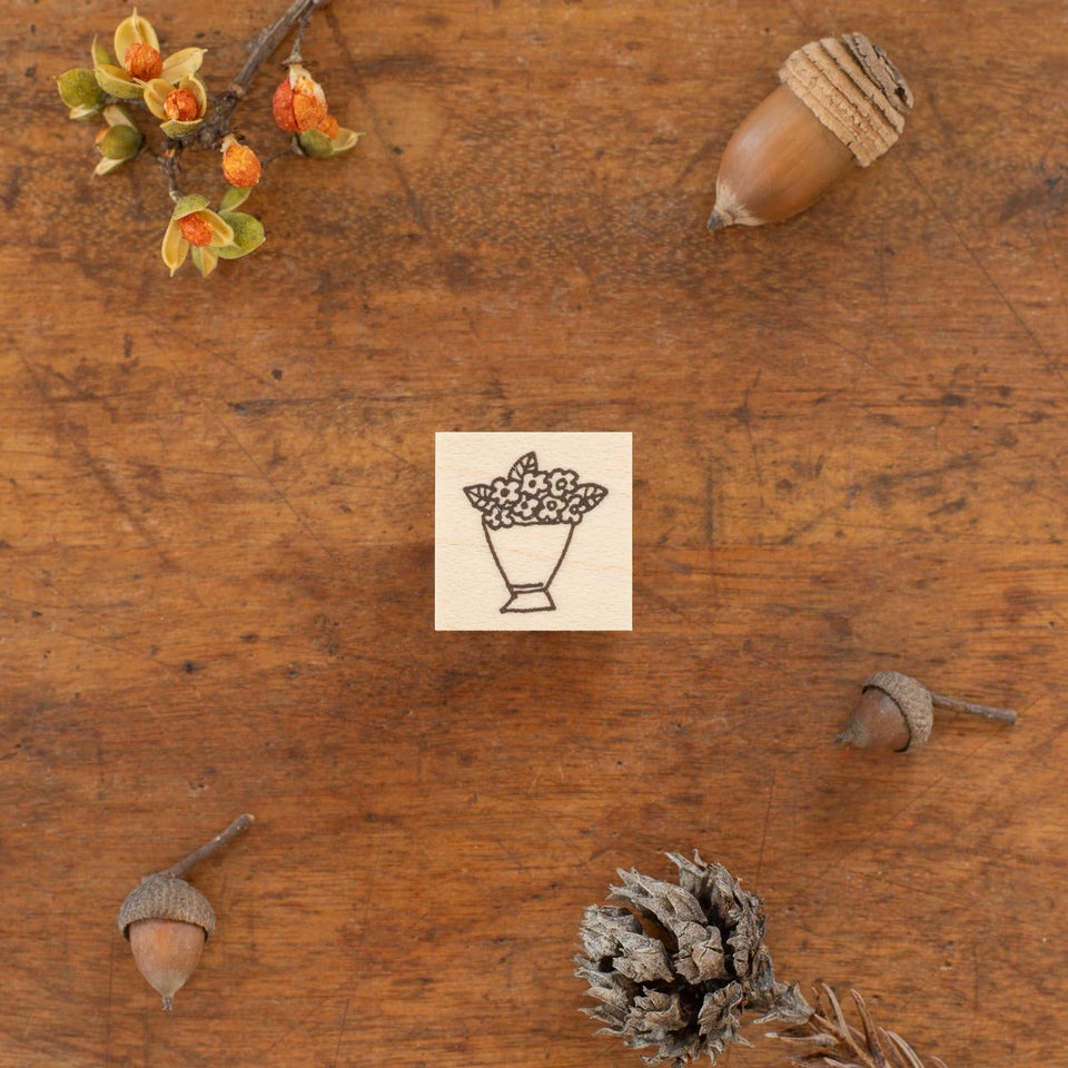 北海道にアトリエを構える、のりおさんとあさみさんによるものづくりユニット・ネクタイさん。ゆるく描かれた動物や人物たちの中にネクタイさんらしいユーモアが潜んでいて、見る人を夢中にさせてくれます。可愛らしいブーケのスタンプです。