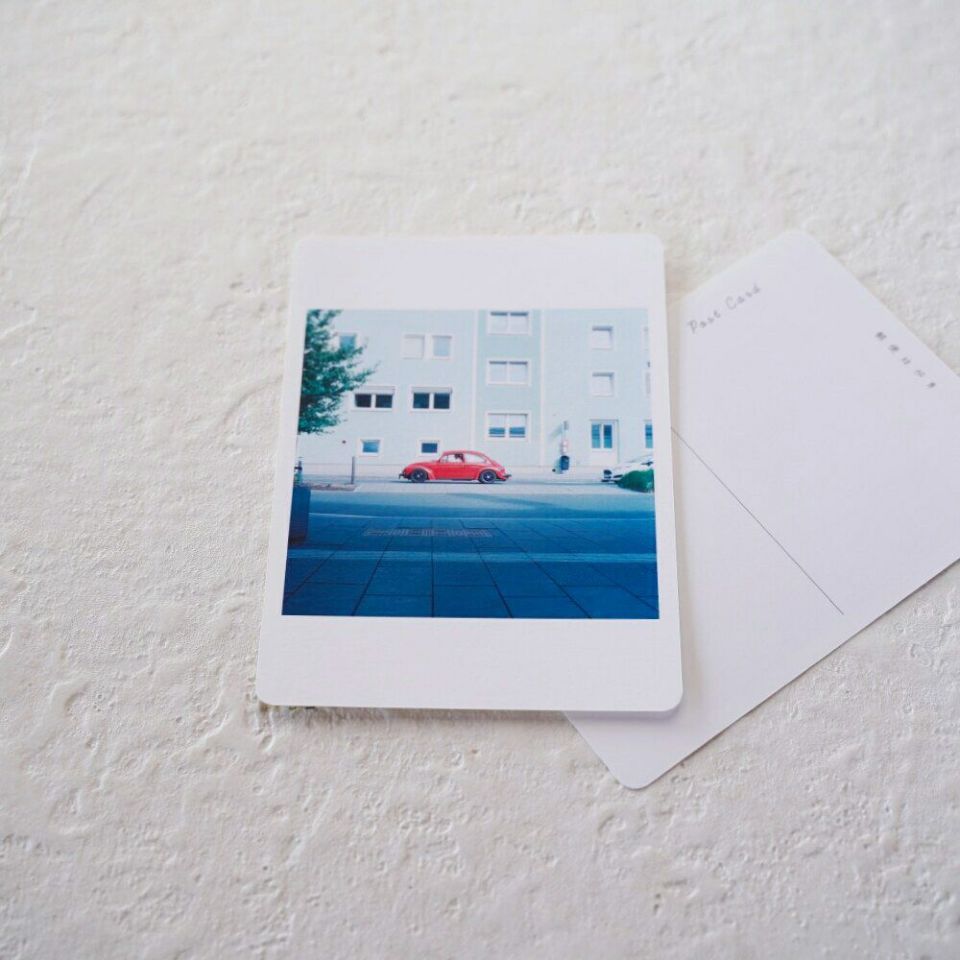 海外の風景を写したポストカードです。 赤いビートルと家族の風景1。岡崎直哉さんが写し撮る、美しき物語の世界へようこそ。