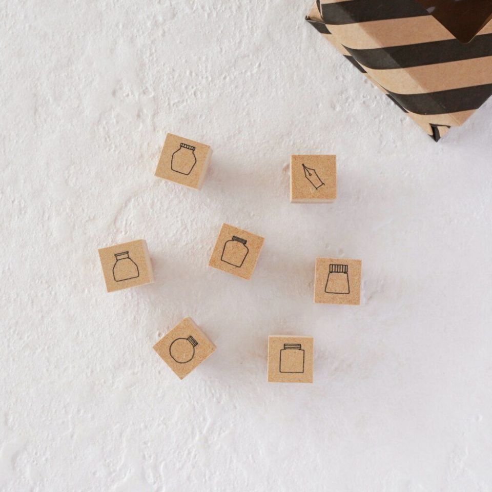 ■内容:インクボトルはんこ 6種類×各1個、ペン先はんこ 1個
