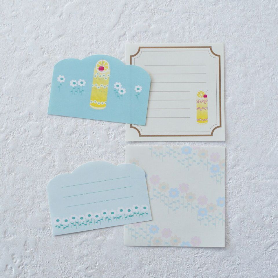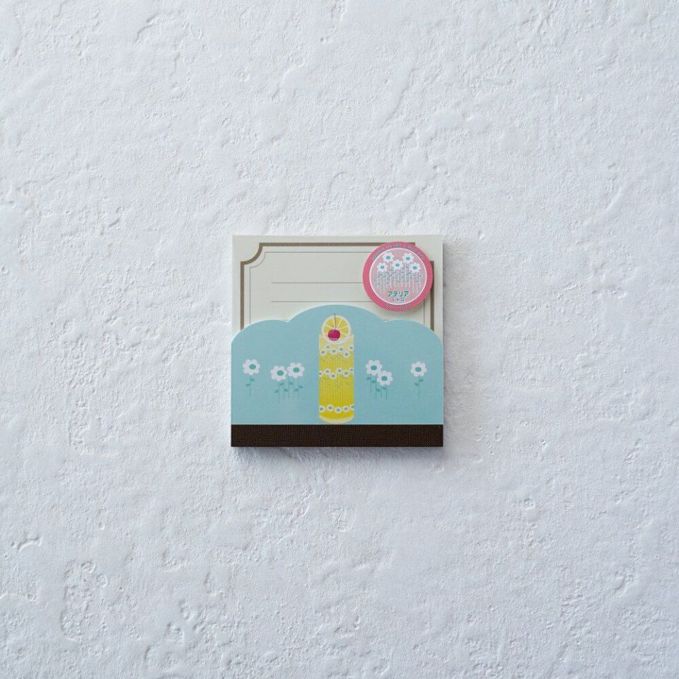 喫茶店のメニュー立てとメニュー表をイメージしたメモパッドです。1層目にはイラストモチーフを、2層目にはグラスのプリント柄、3層目にはメニュー表モチーフ、4層目にはパターン柄と、各層にアデリアレトロの魅力をたっぷり詰め込みました。それぞれの裏面は無地となります。