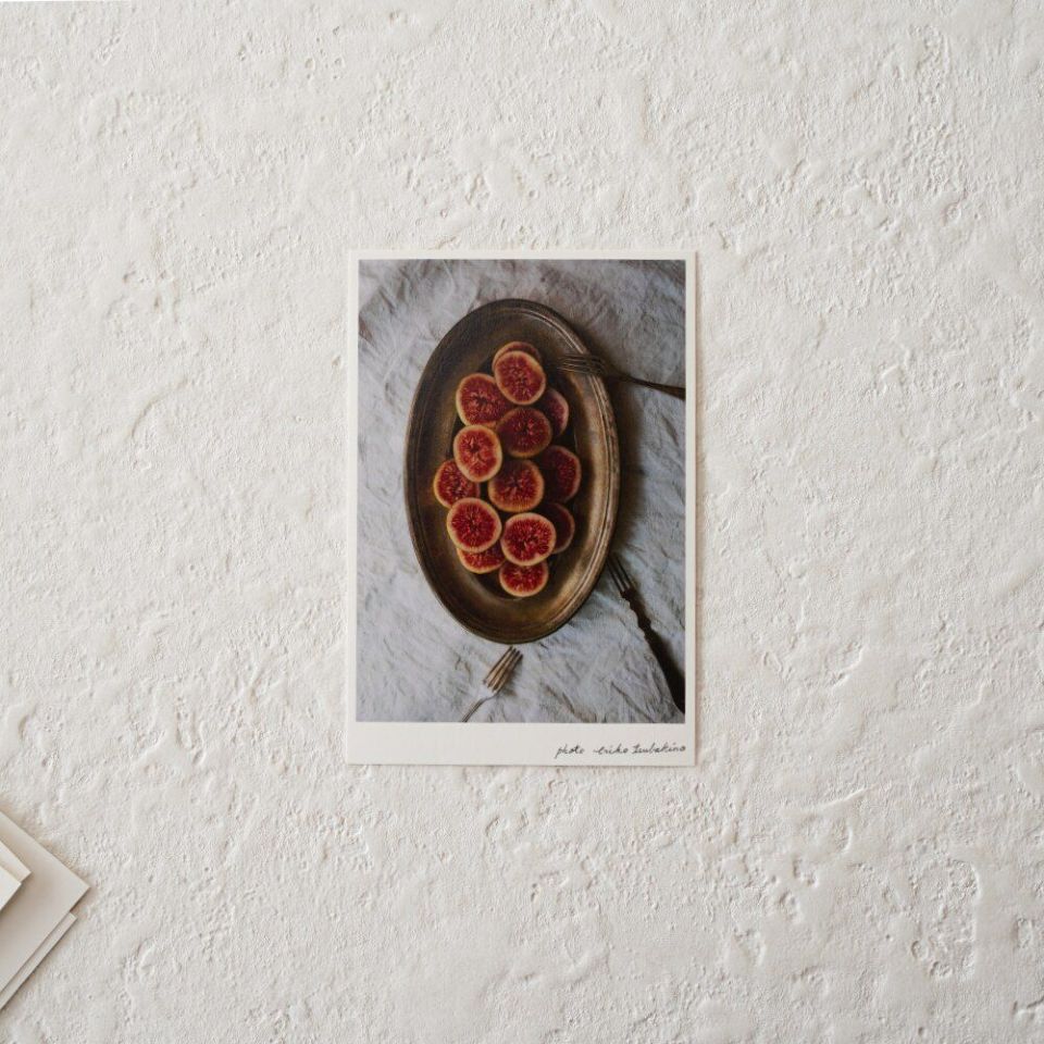 椿野恵里子|季節の葉書 オーバル皿に無花果