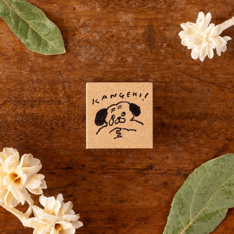涙を流しながらKANGEKI! しているわんこのスタンプ。嬉しいときや感動を伝えたいときにぴったりです。