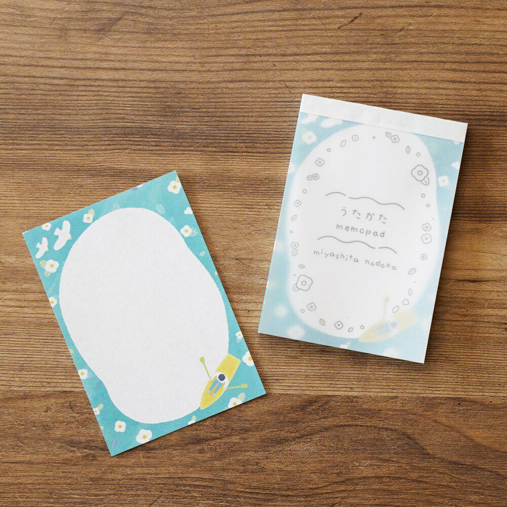 イラストレーターとして、書籍の装幀や広告・パッケージ、雑貨の制作など幅広く活躍する宮下和さん。そんな宮下さんの世界を堪能できる手紙社オリジナルグッズが新登場です。真上から見たイラストが面白い! 鳥やたくさんのお花に囲まれて、軽やかに筆が進むこと間違いなしなデザインです。包装紙でよく使われる[純白ロール]という紙で作られたメモパットです。