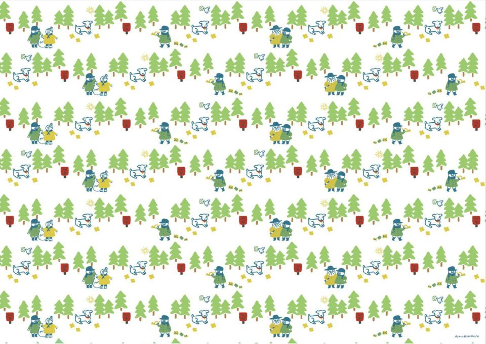 郵便に関する著書も複数出版されているイラストレーター・木下綾乃さん。新登場の包装紙は「郵便」がモチーフになった5つのデザインです。様々な仕掛けが散りばめられているので、ぜひじっくりとご覧ください。怠惰な郵便配達夫「ポス山ポス夫」と、可愛い助手の子ヤギ「ヤギ沢」も登場していますよ! 封筒を手作りして、とっておきの切手を貼って送りたくなる包装紙です。