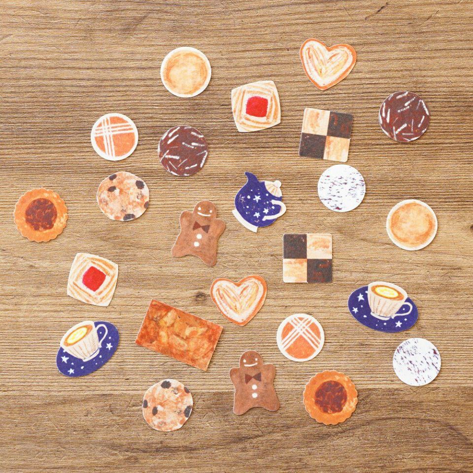 食べること、食べものを描くことが大好きだという砂糖ゆきさんと制作した、フレークシールです。ジンジャーマンや、ハートのリーフパイにジャムクッキー。誰もが大好きなクッキーがシールになりました。クッキー缶を開ける時のワクワクした気持ちで使っていただきたい、そんなフレークシールです。
