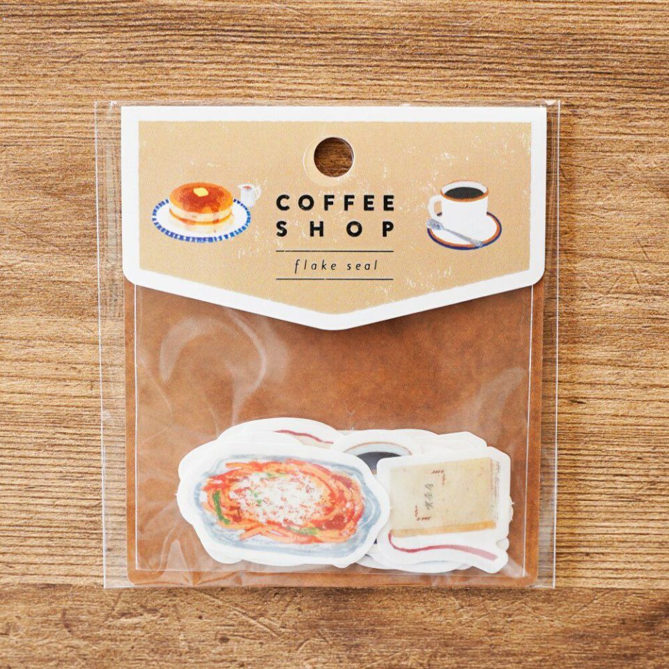 マスキングテープと同じ素材の和紙でできたシールは、貼ったり剥がしたりできるのが嬉しいアイテム。透ける素材なので、どんな色合いのノートや紙に貼っても、白い余白も目立ちません。サイズは、ひとつ25mm〜と少し大きめなので、1枚貼るだけでも存在感があり、手帳のデコレーションでもアクセントになりそうです。ナポリタンやクリームソーダ、プリンアラモードといったレトロ喫茶感溢れるメニューが魅力的な「COFFEE SHOP」。頑張ったご褒美に、好きなモチーフを手帳や日記に貼る、なんて使い方も楽しいかもしれません。