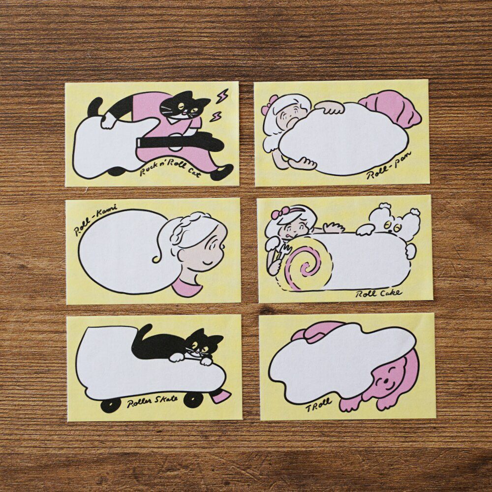 イラストレーター・北澤平祐さんと制作したロールふせんができました。"ロール"にまつわるモチーフをテーマに描かれた、黄色い背景に黒とピンクの差し色で、ポップな世界がなんとも楽しい6柄。手帳やノート、ちょっとした贈り物に添えてみても、パッと明るく華やかになりそうです!