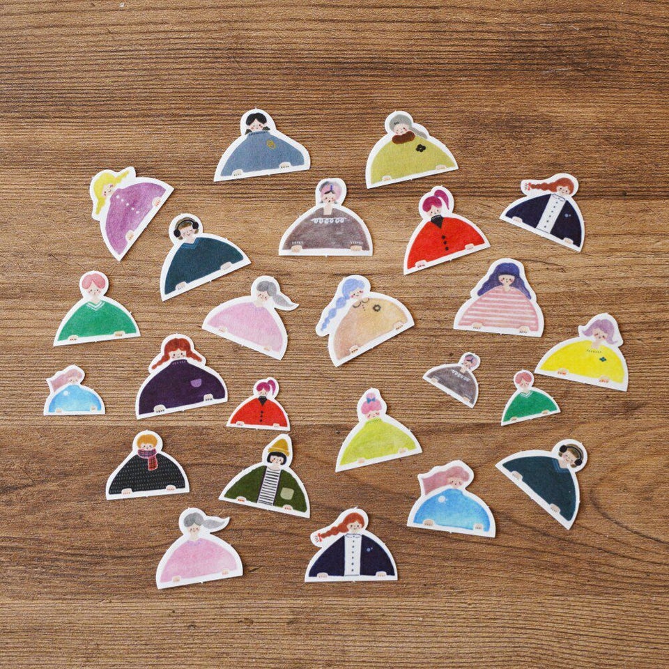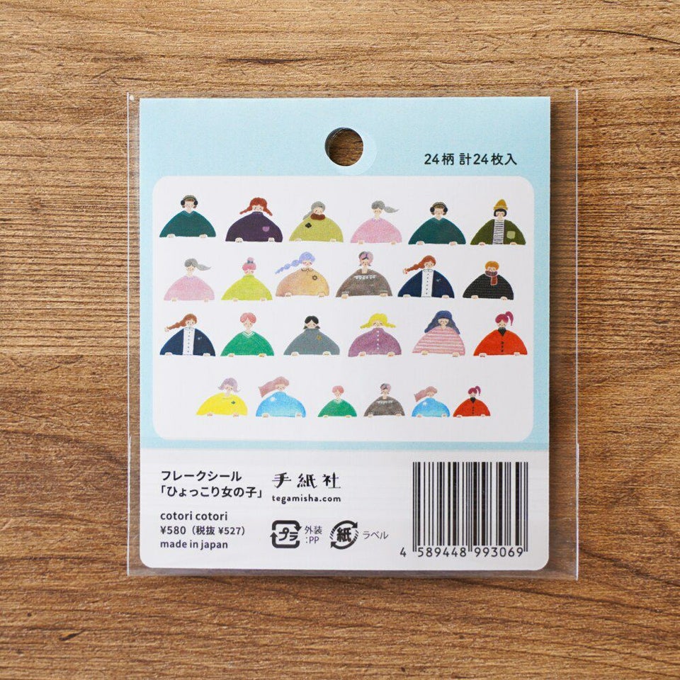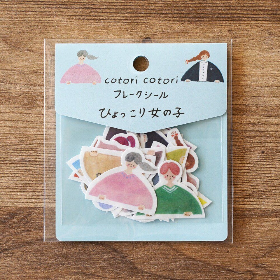 愛媛でオリジナルのゴム版はんこや紙雑貨を制作するcotori cotori。その代名詞である愛らしい女の子たちのデザインで、フレークシールを作っていただきました。1枚1枚切り離されているので使い勝手が良く、手帳デコにおすすめしたいシールです。罫線からひょっこり女の子を覗かせてみましょう。吹き出しを付けて、大切なメッセージを書き込んでも! 和紙シールの柔らかな透け感もお楽しみいただけます。
