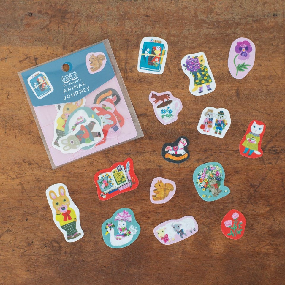 フレークシール「ANIMAL JOURNY」は、北岸さんの愛情を感じさせる、おしゃれなお洋服に身を包んだキャラクターたちが揃い踏み。それぞれが個性豊かで、どの子を貼ろうかな…と、選ぶ楽しみに困惑しそう…! 小さな絵柄のひとつ一つに、アクリルガッシュで描かれた繊細な筆遣いが感じられます。お気に入りの子たちを、とっておきの場所に貼ってお楽しみください。