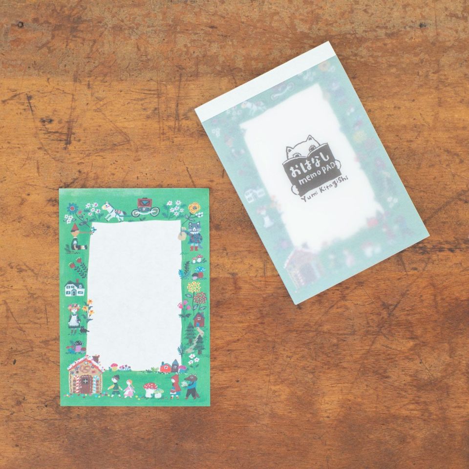 ピノキオや、ヘンゼルとグレーテル、長靴をはいた猫など。慣れ親しんだ絵本の中の登場人物たちが一堂に会した、豪華なデザインのメモパッドです! お気に入りの登場人物たちを探してみてください。