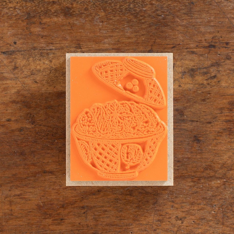 こちらは繊細な線にうっとりしてしまう、カツ丼のスタンプ。三つ葉のトッピングものっていますよ。手帳デコに使ったり、カードに押したり、ぜひ色々な使い方でお楽しみください。