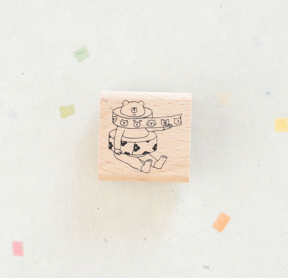 手紙社オリジナルアイテム初登場! ゆるい動物たちの日常をコンセプトに、妙にクセのある不思議な世界観を描くyuichiさん。 マスキングテープの中にすっぽりはまってしまったくまさん。無気力な姿が愛らしく、なんとも言えないかわいさ! 手帳やメモに押すと、ユーモアがプラスされます。