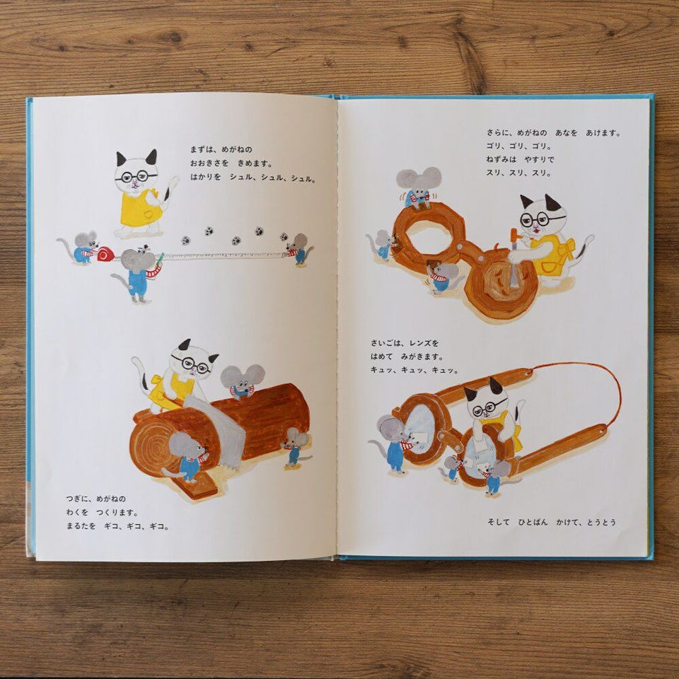 めがねことねずみ3兄弟が、“もりの3ちょうめのぬし”のところまでめがねを届ける旅に出ます。ぼうけんの途中で出会う愉快な動物たちや、めがねこに大きなめがねを依頼したぬしの正体など、前作以上に登場人物がたくさん。思いもよらない動物たちとの出会いや出来事に「この世界に、めがねがあってよかった!」とワクワクドキドキ、少しゾワゾワ(!?)する優しい物語です。