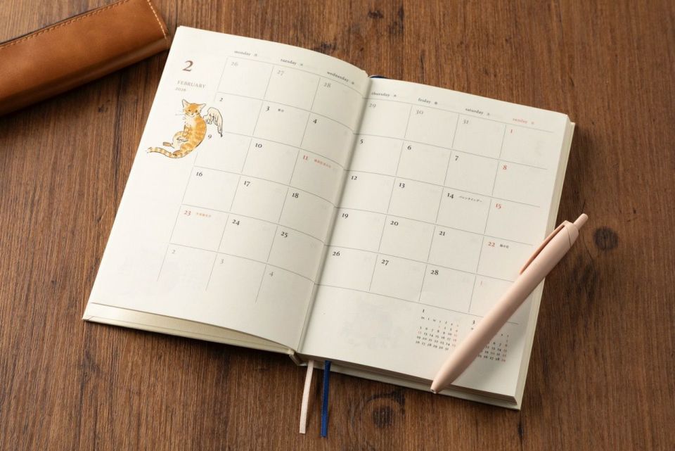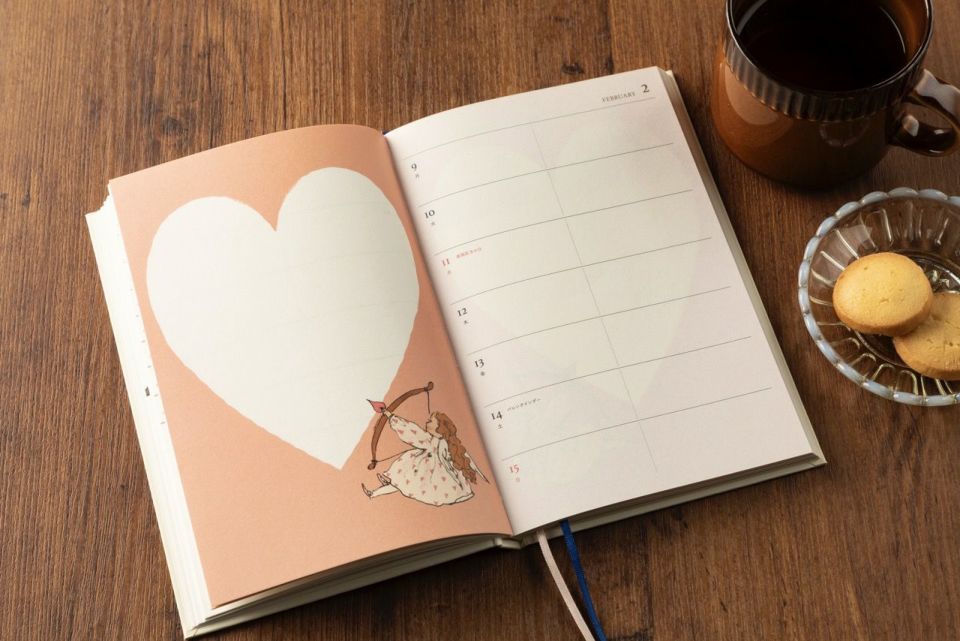 人気イラストレーター・絵本作家のくらはしれいさんの、初のオリジナルdiaryが登場しました。2026年版の絵のテーマは「猫とファンタジア」。マンスリー+ウィークリー+フリーリスト+メモページという構成で、実用的な用途だけでなく、くらはしさんのチャーミングなアートを物語のように堪能できます。表紙は箔押しで、中ページは高級紙を使用した上質なデザイン。持っているだけで幸福感を味わえる、一年間のお守りのような手帳です。しおりリボンが2色ついています。
