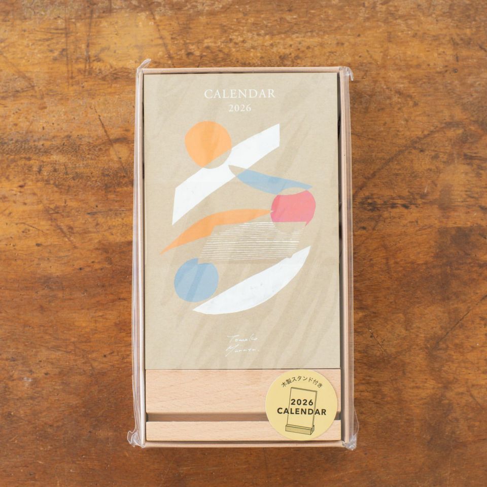 『MATOKA マトカ』からイラストレーター・テキスタイルデザイナーのムラタトモコさんによる、毎月異なる抽象的なアートが楽しめる2026年卓上カレンダーが届きました。スタンドには天然木の無垢材を使用しており、ナチュラルでどんなインテリアにも馴染むデザインが魅力的です。シンプルでありながらも、お部屋に置くだけで華やかさを添える一品です。