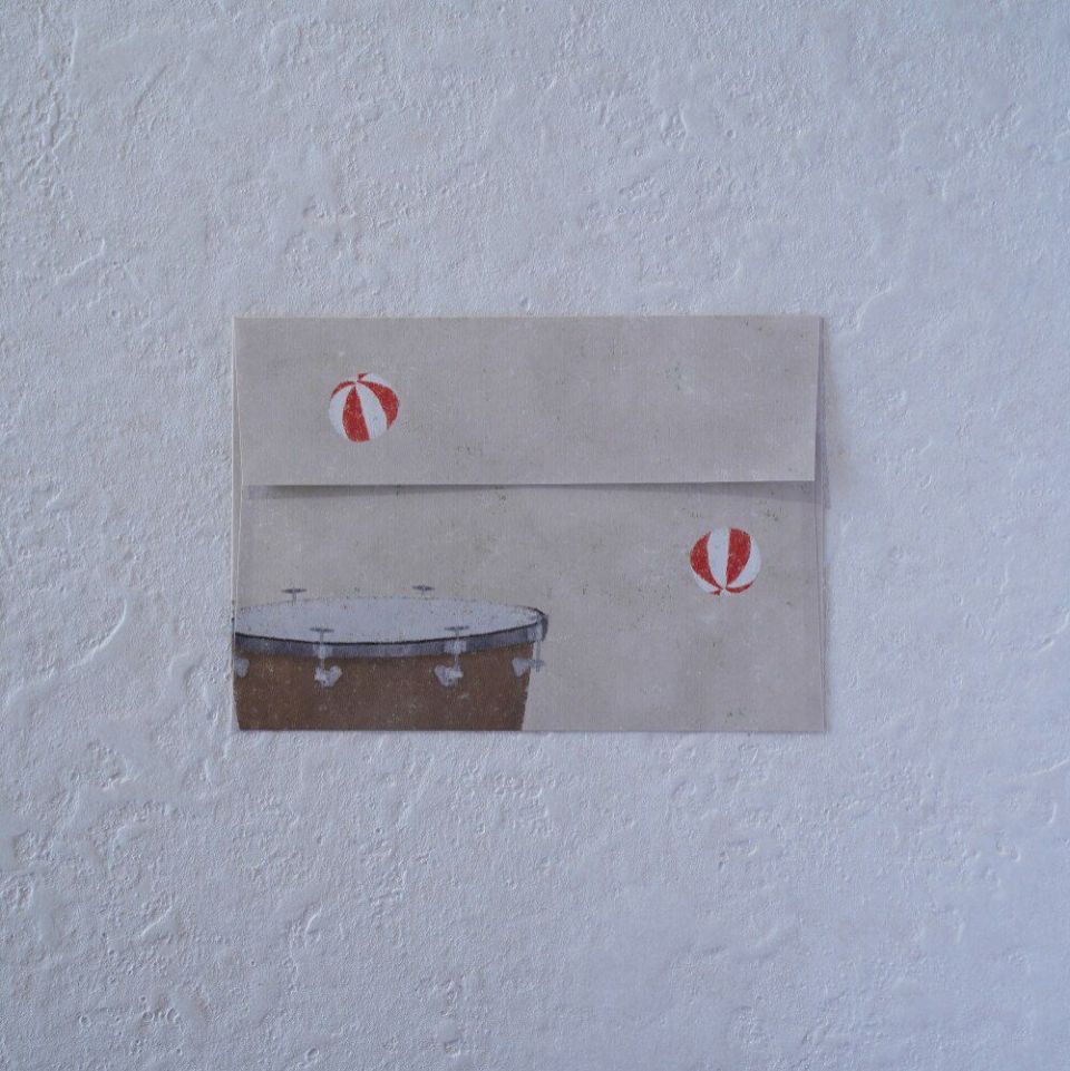 はがきや二つ折のA5サイズの便箋がちょうど入る大きさの封筒です。お手紙にはもちろん、手帳と組み合わせてカード入れにしたり、ポストカード入れにするのにもおすすめ。おそろいの柄の便箋「日下明 便箋 BEAT」もございます。