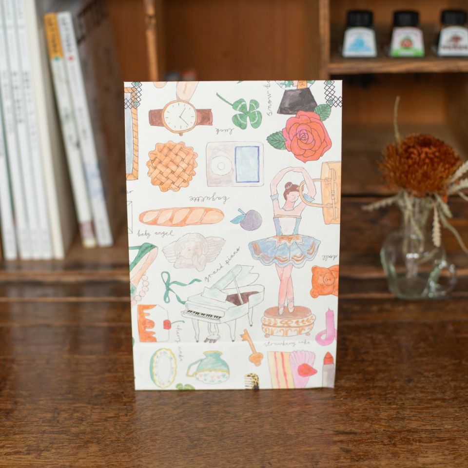 韓国語で「ハサミ」を意味するkawi。大切な人への贈りものを、よりいっそう輝かせる紙ものを制作しています。「Block bottom bag Naon × kawi」は、韓国・済州島を拠点に活動するイラストレーター・ナオンさんとkawiがコラボレーションして制作したマチ付きバッグ。作家自身がプレゼントしたいものや、もらいたいものをたっぷりと詰め込んだ賑やかなデザインは、眺めているだけで嬉しい気持ちになりそう。独特なタッチと鮮やかな色づかいのイラストがプレゼントを華やかに演出してくれますよ。