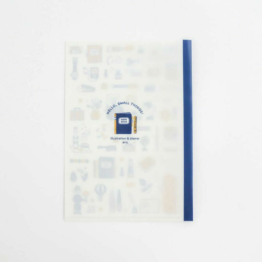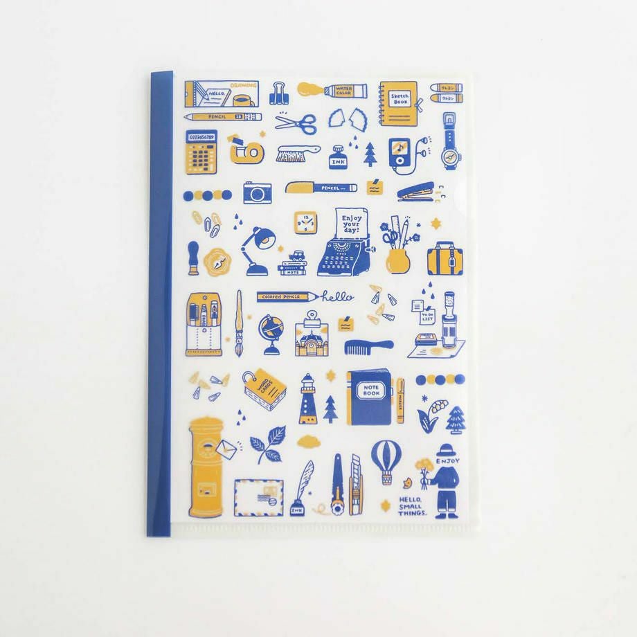 「HELLO, SMALL THINGS!」は、インクやペン、ノートにハンコ、クリップにタイプライター。文房具をモチーフに、可愛らしい小物たちがぎゅっと詰まった新シリーズです。クリアファイルはノートのようなデザインに仕上がりました。
