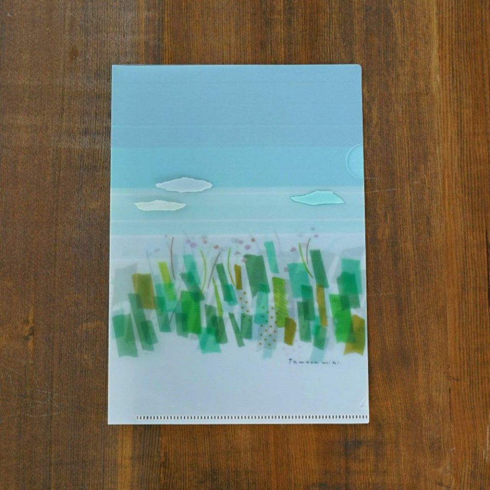 マスキングテープちぎり絵作家であり、イラストレーターでもある田村美紀さん。ちょっとここらでひと休み。マスキングテープで描かれた植物や空が印象的なクリアファイルです。お供にも連れて行きやすいA5サイズなので、お出かけ先のショップカードやコースター、箸袋(!)など、思い出を連れて帰りましょう。