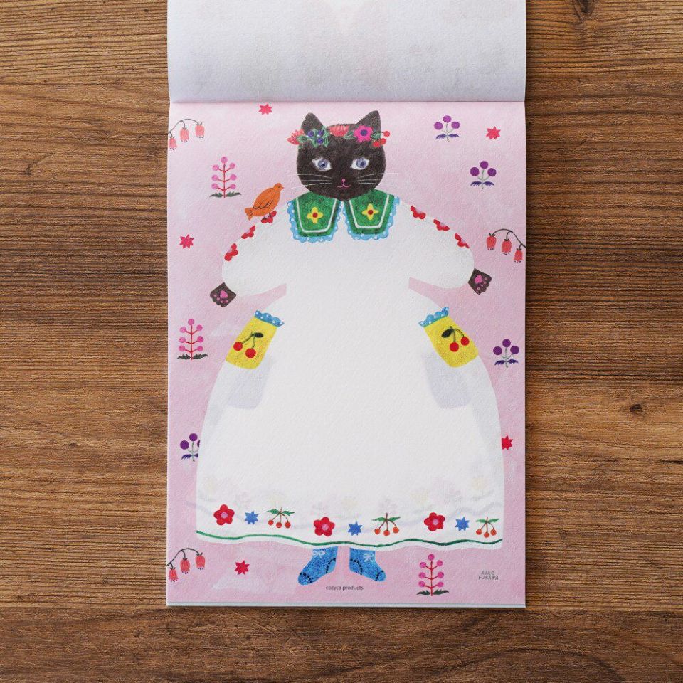 イラストレーター・布川愛子さんの便箋。絵本のような温かみと愛らしさのあるデザインです。ネコさんのワンピースに模様を描くように文字を書けば、素敵なお手紙ができあがりますよ。罫線がないので、お好みの文字量・大きさでお使いいただけます。ラッピングペーパーやデザインペーパーとしても使うのも◎ おそろいの柄の封筒「布川愛子 封筒 Cat and Onepiece」もございます。