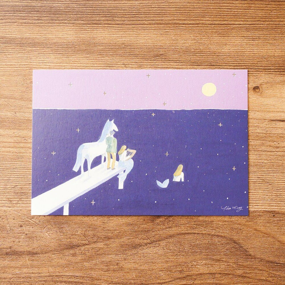 夜の海に銀の星がきらりと輝く、柊有花さんのポストカード。切なげな情景が美しい一枚です。 裏面にもフルカラー印刷を施しております。大切な方への贈りものに添えたり、お部屋のインテリアとして飾るのもおすすめです。