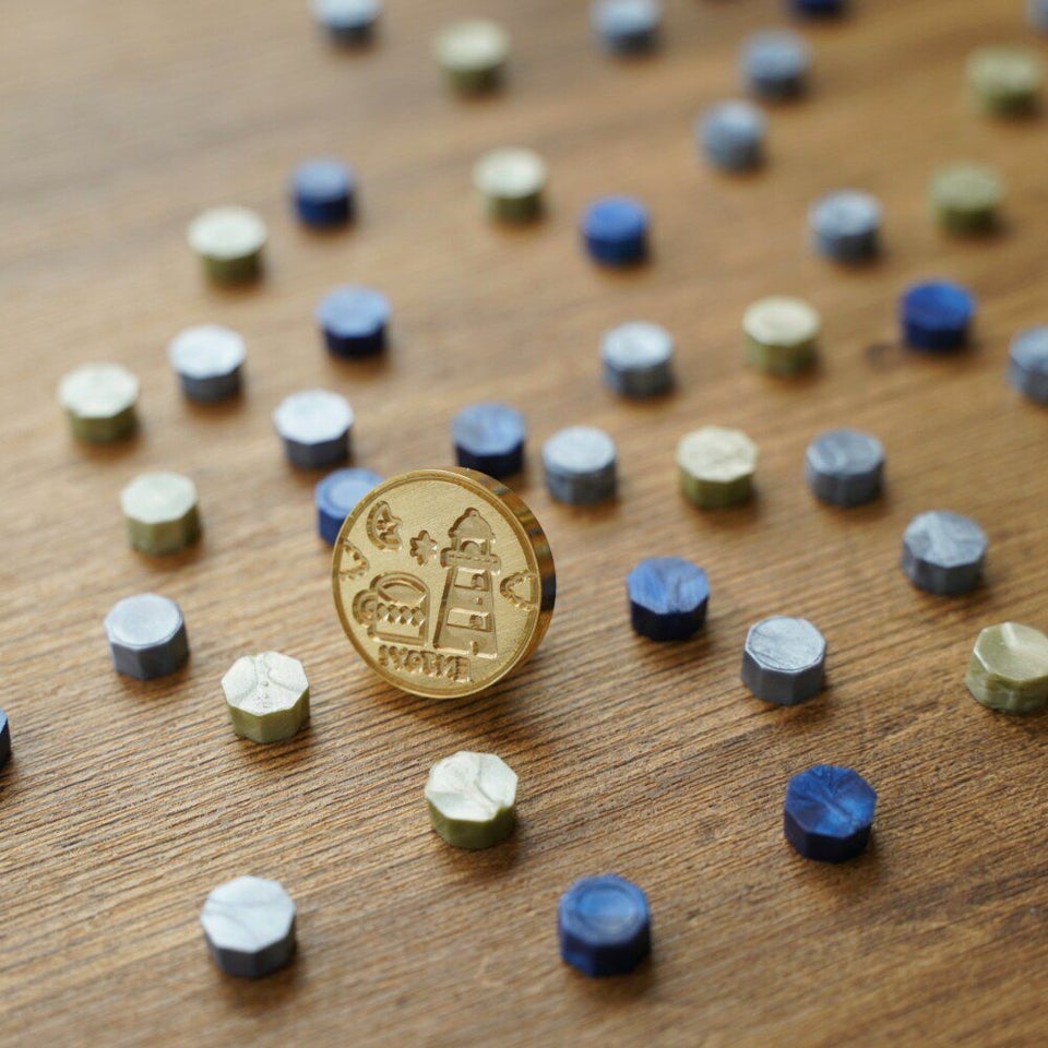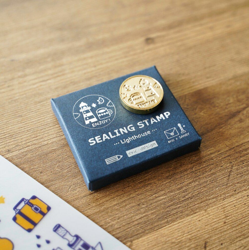 消しゴムはんこ作家・ericさんとスタンプメーカーSANBYさんがコラボレーションしたシーリングスタンプ。大切なお手紙やラッピングなどが、スペシャルな装いに変わります。こちらは灯台とコーヒーカップのモチーフが描かれたデザインです。