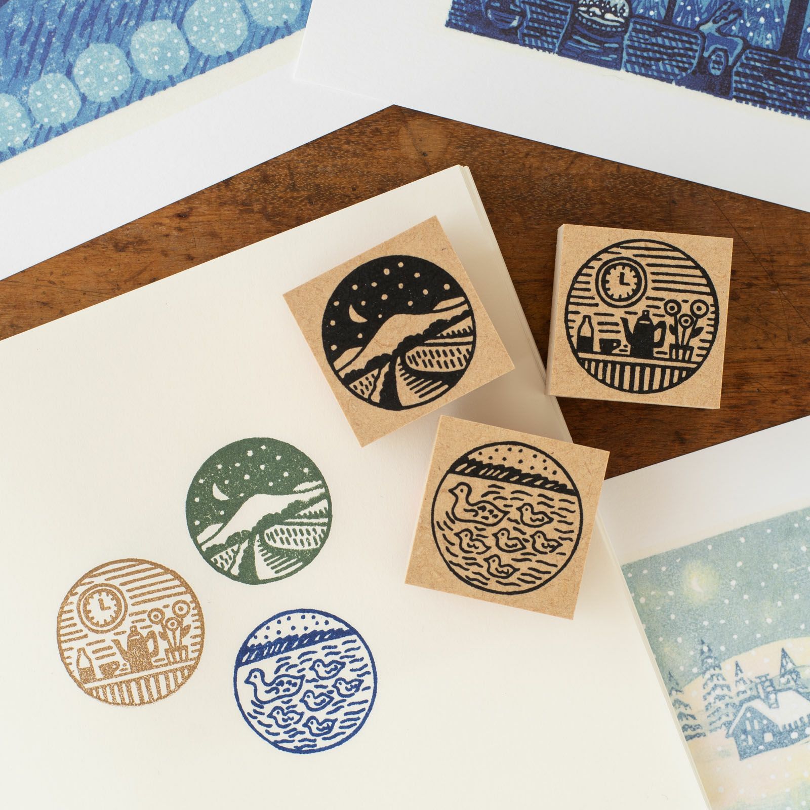 海や山、空、町並みなど、静けさと美しさが宿る作品を、版画で表現するイラストレーター・平岡瞳さん。10月に手紙舎 2nd STORY、11月に手紙舎 文箱にて開催の個展「風のうた」にあわせて制作された、スタンプ3種類が登場です。