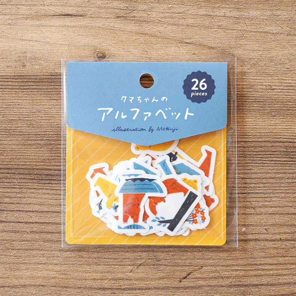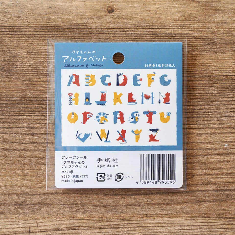 自由気ままにさまざまなポーズをきめるクマちゃんたち。よく見るとアルファベットの形です。手紙社の雑誌『LETTERS』創刊号のために創作ユニット・Mokujiが描きおろしてくれた「クマちゃんのアルファベット」がフレークシールになりました! AからZまですべてのクマちゃんが1枚ずつ入っています。手帳や手紙に貼ったり、スマートフォンなどの持ち物に自分のイニシャルを貼ったり、ぜひ思い思いにお楽しみください。