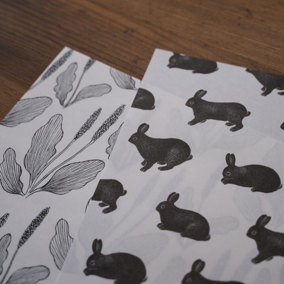 切ったり敷いたり包んだり、ご自由にお使いいただきたいペーパーのセットです。おなじみの植物、オオバコの模様です。