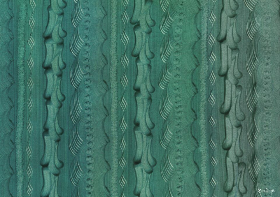 ふたごの紙作家・Zwillinge(ツヴィリンゲ)。糊の上に絵具を載せて、くしなどの道具で跡をつけるヨーロッパの伝統的な紙染め技法「クライスター・パピア」を用いることで生まれます。実際に染めた作品が、5種類の包装紙になりました。柄やカラーによって、重厚なイメージ・可愛らしいイメージ・モダンなイメージ…特別な贈り物を大事に包みたくなる包装紙です。