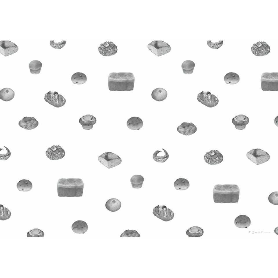 一見「写真かな?」と、見間違ってしまう、繊細で透明感がある作品が印象的な舘野明日佳さん。[切手&ポストカードセット]に続き、包装紙をご制作いただきました。紙の上に、ころころと並ぶ美味しそうな食べ物たち。フルーツのカット面も瑞々しく描かれています。焼き菓子たちは楽しそうに行進しているようなご機嫌なデザインになっています。ちょっとしたお裾分けをする時の紙袋を作ってみるのもいいですね。A3サイズなので、定型封筒を2枚作ることができます。純白ロールという、片面がツヤツヤ、片面がザラザラしている用紙を使用しています。イラストの雰囲気に合わせてツヤ面・ザラ面に印刷しているパターンがあるので、手触り感もお楽しみください。
