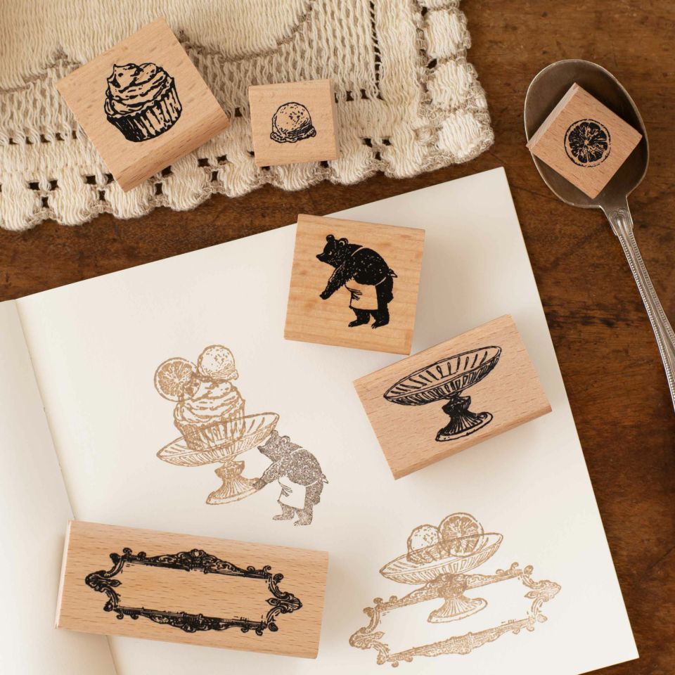 アイスクリームのスタンプは、カップケーキやアンティークプレートなどと組み合わせてオリジナルスイーツを作っていただけます。お好きな色を塗って色々なアイスクリームを作ってみても楽しいですよ!