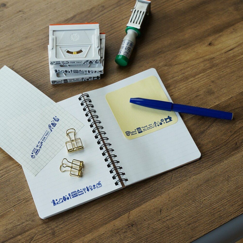 同シリーズの組み合わせスタンプは重ねて連結させて使うことができます。連結する時はワンタッチではめ込め、取り外しも簡単です。