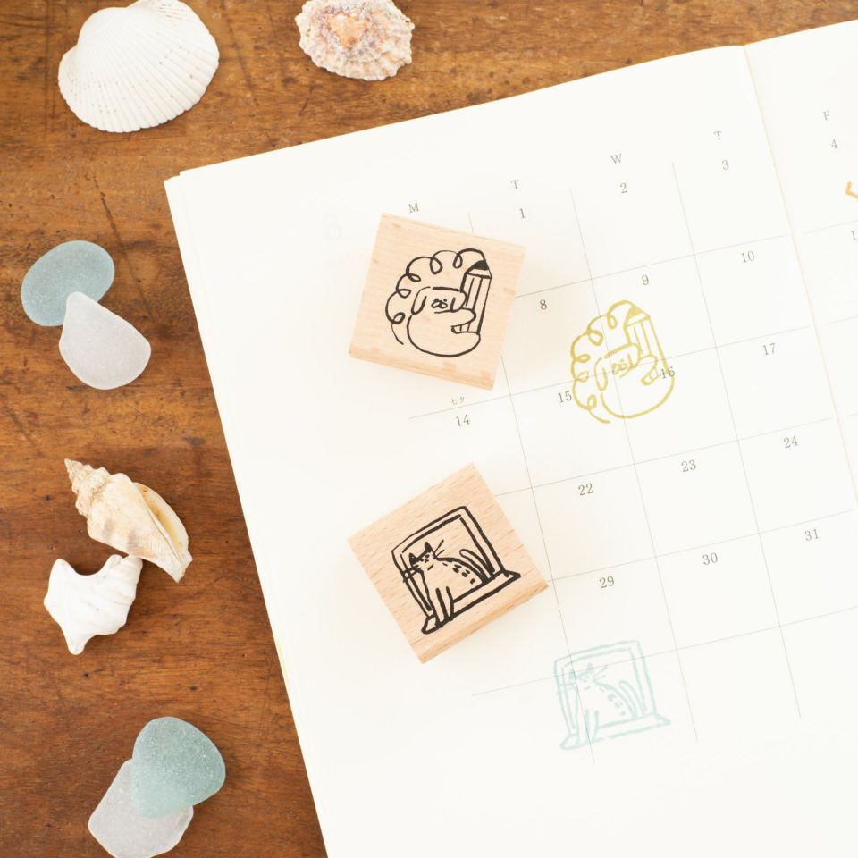 手紙社さんとの初コラボになります。そしてアイテムでは初のハンコ♪ イベントのテーマが海ということで手紙社さんとわくわくしながら作りました。海をモチーフにした「うきわんこ」「ニャンコサン」。その他に親しみやすい動物としてゾウの「おくりもの」。わんにゃんシリーズは「ワンぴつ」「猫窓」「TODOやる気ライト」をつくりました。ぜひやる気ライトで色々TODOしてほしいです! ついでにタイトルも一緒に楽しんでいただけたら幸いです。