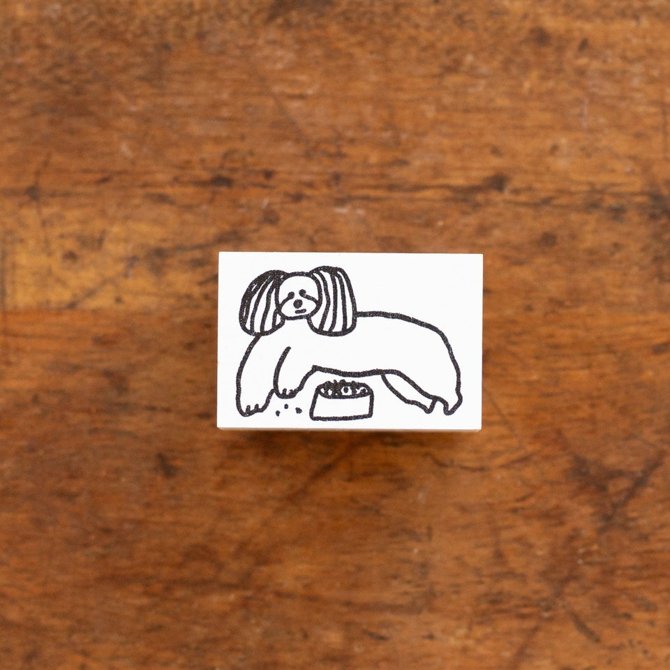 ゆるいタッチで日常の何気ない感情や出来事を描き、スタンプの制作やデザインをされている iwahanko.さん。ぽろぽろとごはんをこぼしちゃったわんこのスタンプです。