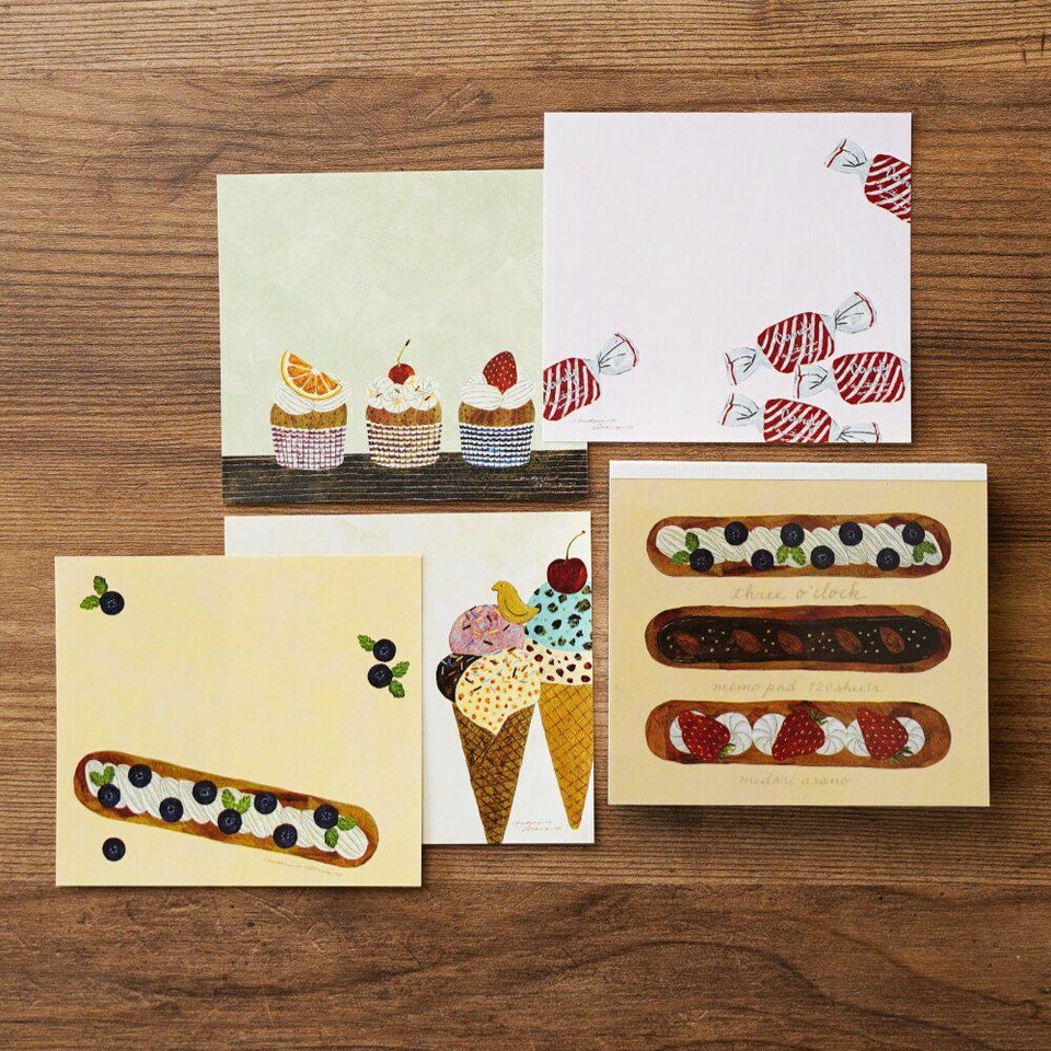 イラストレーター・浅野みどりさんデザインのブロックメモ。見ているだけでついついおやつが食べたくなってしまいそう。使えば美味しい生活を送れるかもしれません。