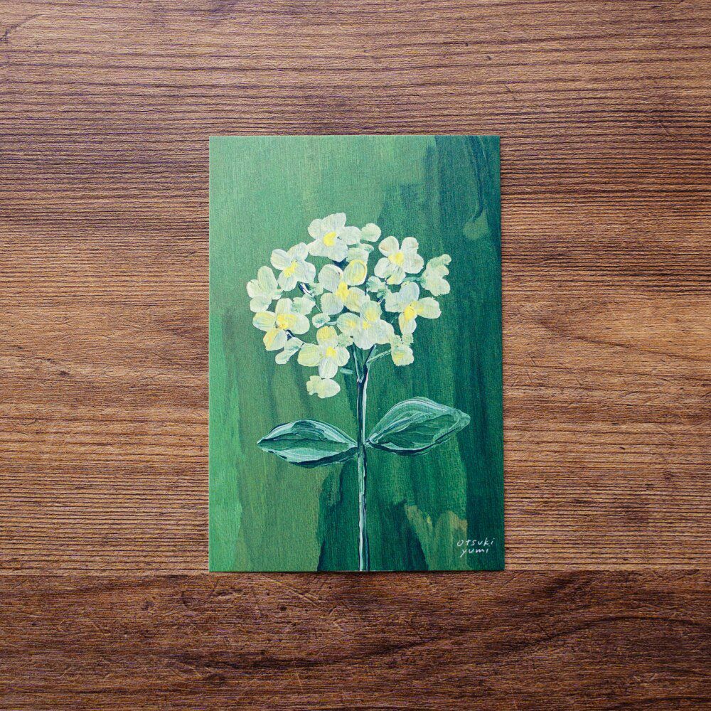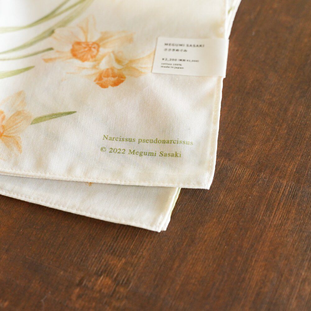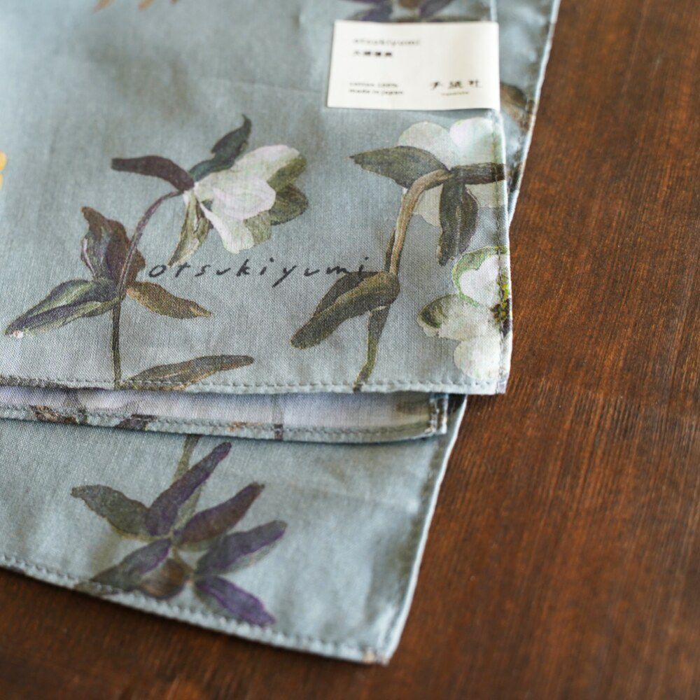 テキスタイルデザイナーの大槻優美さんが手掛けるブランド。すらりと伸びるチューリップや雨に滲んだ紫陽花、ちょっぴり頭を垂れたすずらんなどのイメージは、身近な自然をふと綺麗だと感じた瞬間や旅先での思い出から取り出しているそう。移ろう絵具の混色も楽しむように描かれるデザインは、花びらや葉の一枚一枚、石ころ一とつひとつに表情が現れて面白い。手描きのタッチを大切に生かしたデザインを落とし込んだテキスタイル。その筆触や色の重なりの妙にも酔いしれよう。
